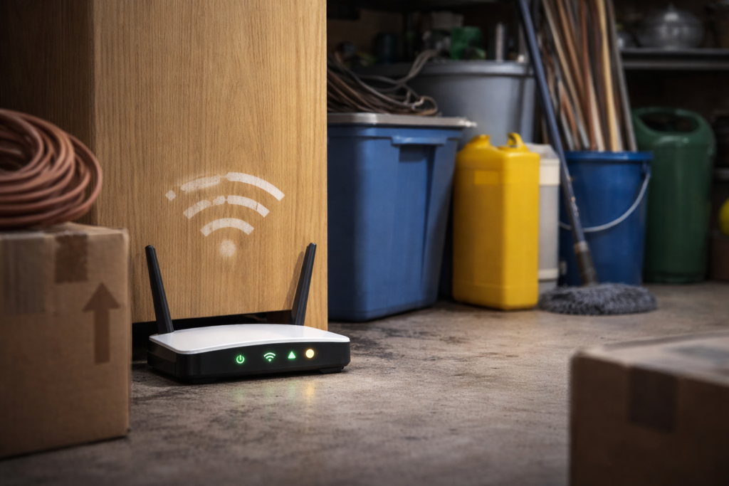 Ein Router im Keller, hinter einem Schrank oder neben Metallflächen?